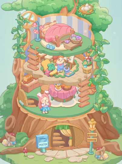 様々なシチュエーションの部屋の中を、家具や鉢植え、建造物等を正しい位置に配置していきましょう。
