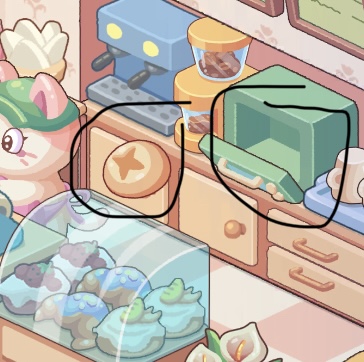 ケースにはケーキ類を入れる、右下の柱に草を取り付ける