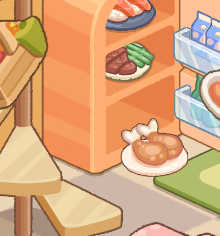 冷蔵庫、肉、寿司、牛乳、ステーキ、瓶を入れる