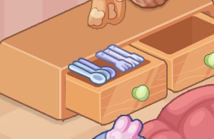 オーブン左の引き出しに瓶、緑の固形物をいれる