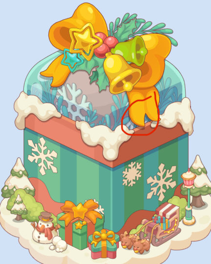 バグ?で中の透明ガラスが入らない場合あるので注意、赤丸に雪マークを取り付ける