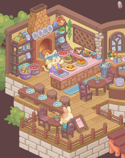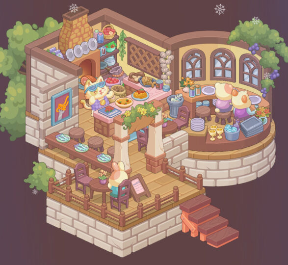 様々なシチュエーションの部屋の中を、家具や鉢植え、建造物等を正しい位置に配置していきましょう。