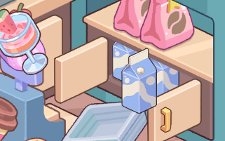 レジ裏の収納に牛乳を入れる