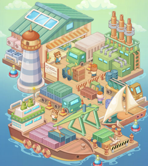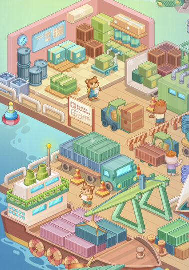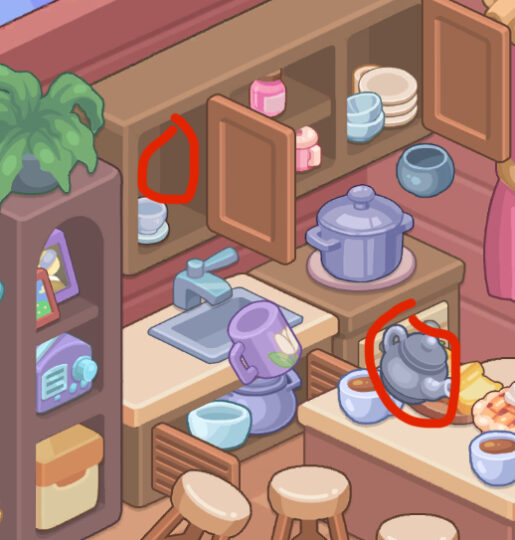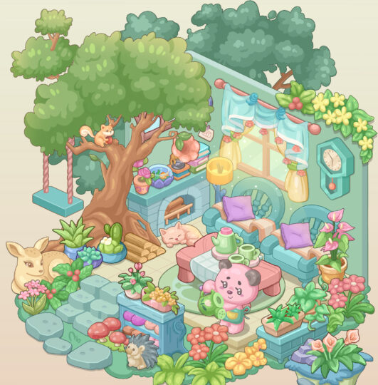 様々なシチュエーションの部屋の中を、家具や鉢植え、建造物等を正しい位置に配置していきましょう。