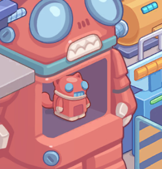 大きなロボットの中に小型のロボットを入れてから蓋をする