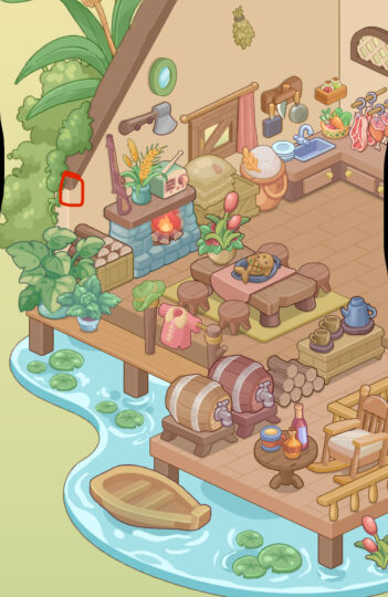 飲み場を作る、左、左上に木を配置、笛は岩の後ろ