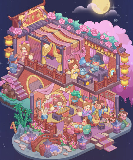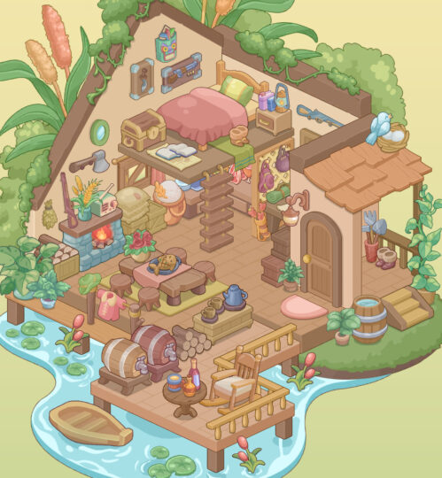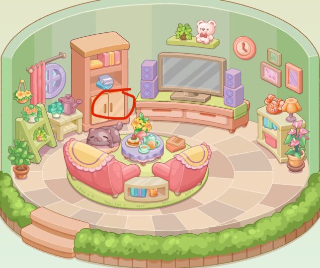様々なシチュエーションの部屋の中を、家具や鉢植え、建造物等を正しい位置に配置していきましょう。