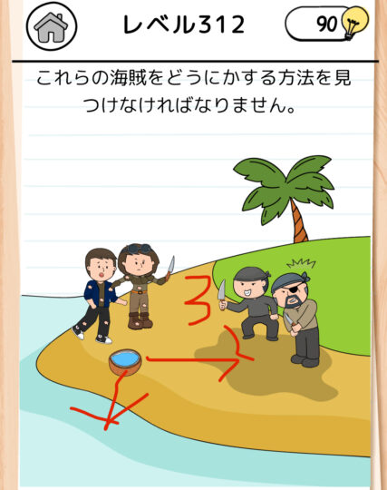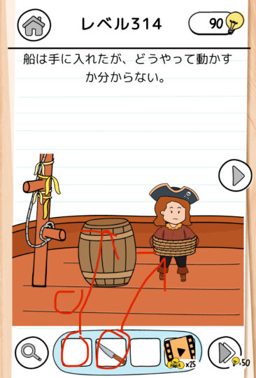 海賊が右を向いている時に草をタップして進む、左を向く前にタップして停止する