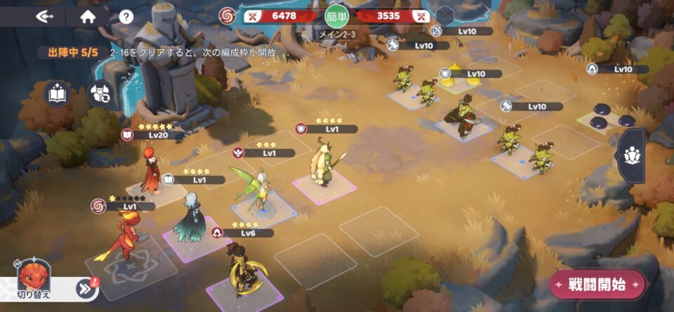 最大6人編成のパーティーを作る際、アサシンやタンク、魔法使いなど各職業に割り当てられたキャラクターを、最適な配置や敵の布陣に合わせて編成可能。