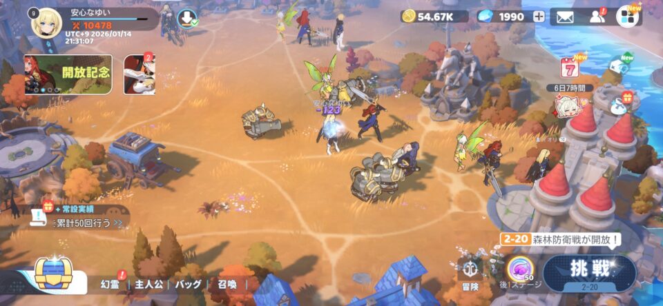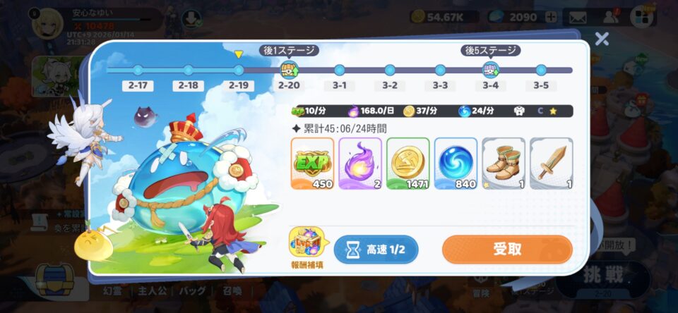 ゲームを起動していなくても自動的に戦闘が行われ、報酬が貯まっていきます。