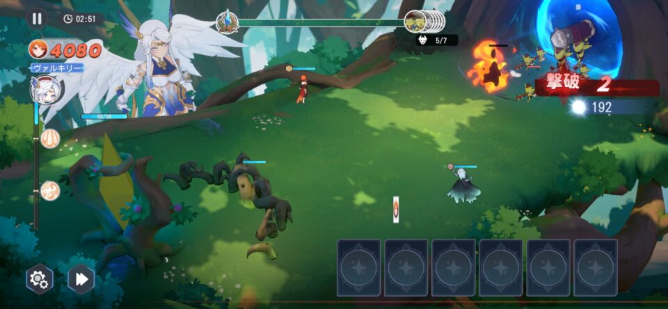 スキル操作は直感的、タップするだけで自動的に発動位置を指定してくれるため、気軽にプレイできます。