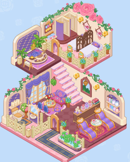 テーマや世界観に沿った部屋をヒントに、家具を配置して完成させましょう。