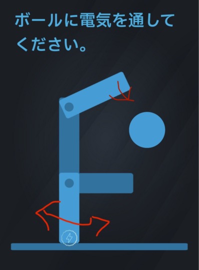 下の棒を左右にスワイプし摩擦で電気を出し、上を下にスワイプしボールに通す