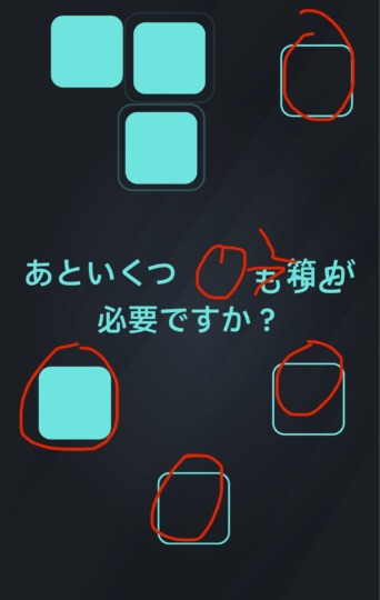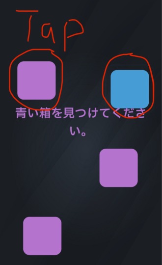 紫の箱をタップしていき、青い箱をタップ