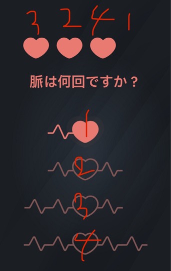ハートが脈を打つ数を照らし合わせ、左から4231の順に上からハートを取り付ける