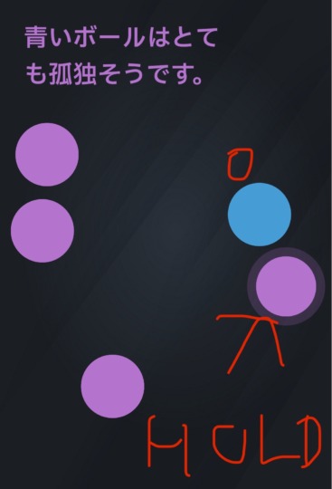紫のボールを長押ししながら青いボールを反対側からタップする