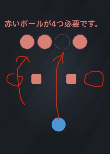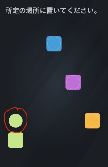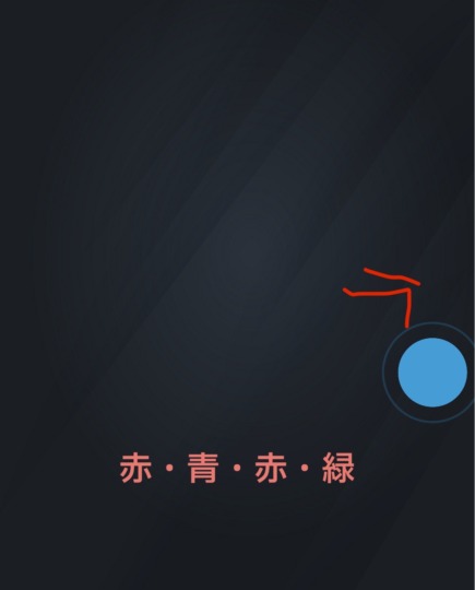 左右にぶつけると色が変わるので、赤、青、赤、緑の順にタップする
