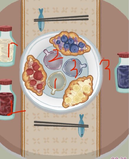 バスケットをタップしてお皿を配置後、食材を配置