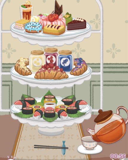 お皿を配置し、紅茶をそそぐ