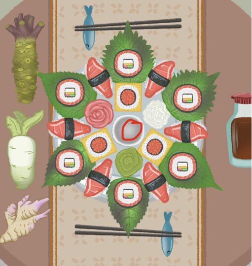 食材を配置して同じ色のソースをいれる