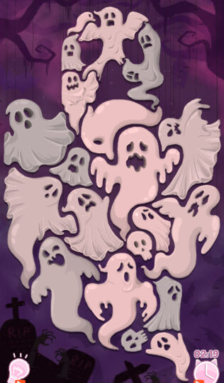 おばけを正しい位置に配置する(正解の位置だと音が変わります)