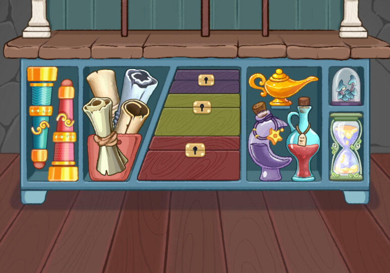 フラスコの高さ、本の数字、瓶の形、葉の形は当たらない、並びになるようにする