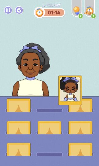 登場する人をヒントにカードをタップして過去のその人の写真を出していく